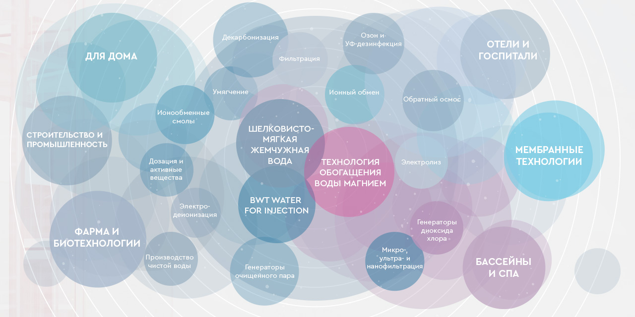 Технологическое преимущество может быть достигнуто только теми, кто мыслит и действует инновационно. Поэтому в инновационных центрах BWT мы постоянно проводим исследования во всех областях водоподготовки: процессы фильтрации, фильтрующие среды, ионообменные системы деминерализации, умягчения, декарбонизации, мембранные технологии (микро-, ультра- и нанофильтрация, обратный осмос), генераторы чистого пара, дистилляторы чистой воды, УФ-системы, генераторы озона, ионообменные мембраны, электролиз, электродиализ, электродеионизация, генераторы диоксида хлора и дозировочные насосы - мы непрерывно работаем над этим для Вас.