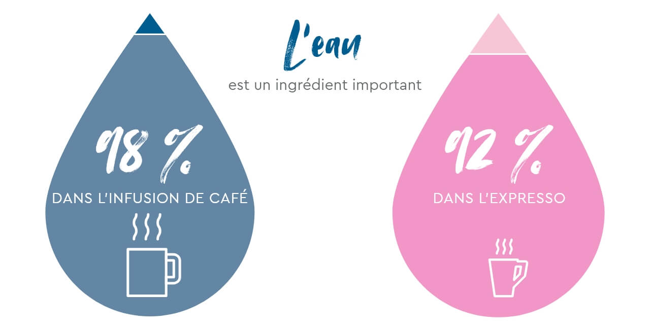 Si vous considérez qu'un expresso contient environ 92% d'eau, une tasse de café en contient elle environ 98%, ce qui va jouer un rôle décisif dans l'extraction du goût. Vous comprendrez pourquoi la qualité de l'eau est si importante pour un résultat gustatif.