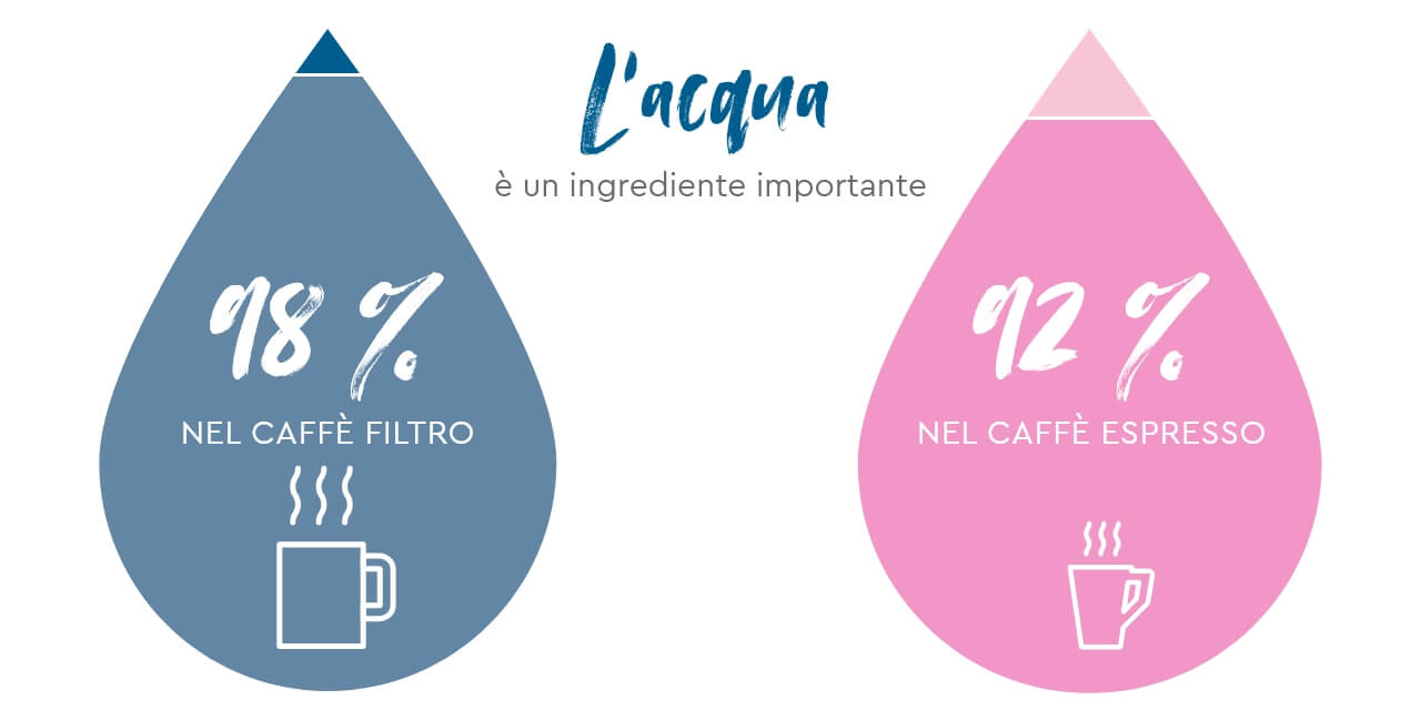 Se si considera che un espresso è composto da circa il 92% di acqua e che una tazza di caffè del 98% di acqua, che svolge un ruolo determinante come estrattore per il gusto, risulta chiaro perché la qualità dell'acqua è così importante per il risultato gustativo. Il 92% di acqua e una tazza di caffè