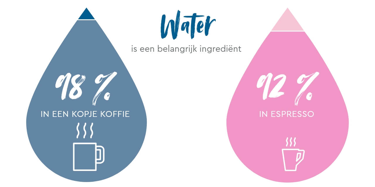Als we bedenken dat een espresso voor ca. 92% uit water bestaat en een kopje koffie zelfs voor ca. 98%, en dat dit water als extractiemiddel een doorslaggevende rol speelt voor de smaak, wordt duidelijk waarom de kwaliteit van het water zo belangrijk is voor de uiteindelijke smaak.